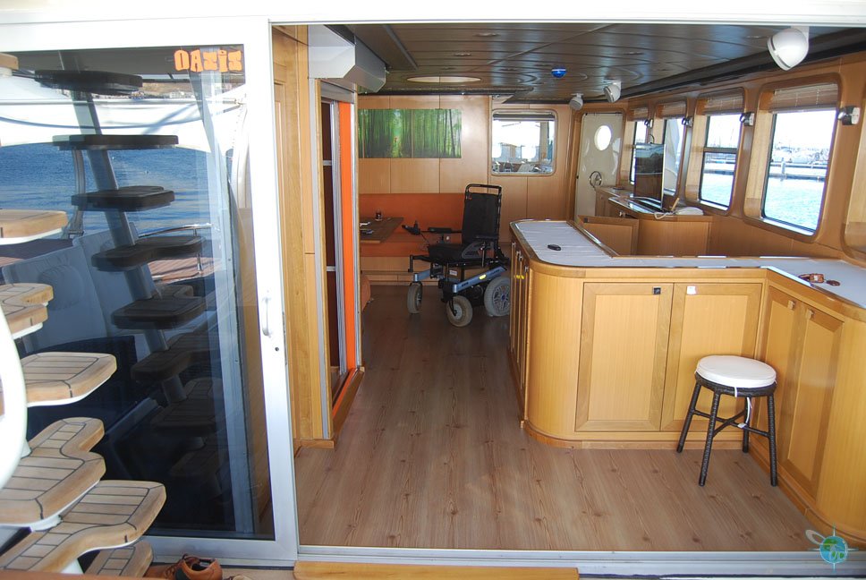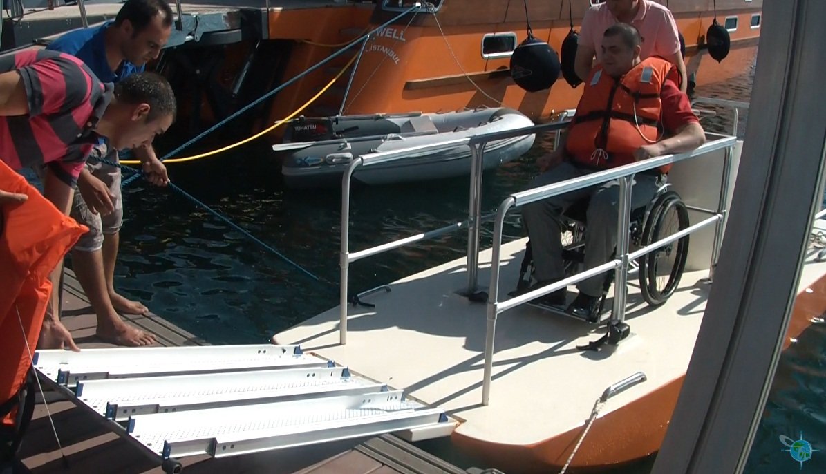 Currently, the yacht is in Istanbul but after May 2013 it will be available to handicapped guests on the coasts of the Aegean and Mediterranean Seas. All tours start at 10am but can be adjusted if needed. Guests can rent the yacht for a maximum of one month or as little as one night. Renting the yacht for just a day cruise (10am-10pm) is also an option and costs 1.000,00€. One overnight trip costs 2.000,00€. Guests need to inform Well-abled how many days and nights they wish to use to yacht and figure out food menu details. Food, beverage, fuel expenses are not included. One hour of cruising on the boat consumes an average of 70 liters of fuel which costs approximately 70€ per hour. Reservations must be made two months in advance and require a 20% deposit.