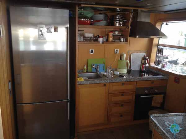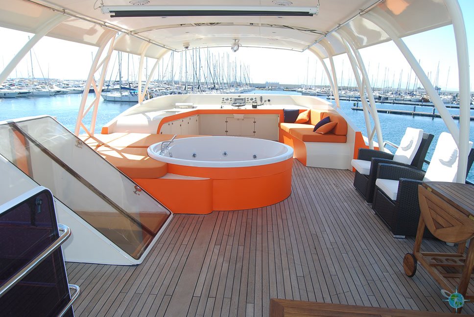 To ensure safety and peace of mind, panic buttons have been installed in every room on the yacht in case guests need assistance of any kind. In the main room, there is a sitting area for six people and the table’s height can be electronically adjusted; all other tables can be manually adjusted. There are even two cockpits (main and top floor) designed for handicapped guests to be able to drive as it is equipped with an electronic rudder and gas control lever. Although the kitchen (main floor) is not specially designed to be wheelchair accessible, some may still find it manageable. Plus, there will not be much need to prepare meals yourself because a professional cook accompanies the yacht. Guests are welcome to shop for their own food for the duration of the voyage or the staff can assist or do it completely. The kitchen also includes a ground level dish and clothing washer. A deck is also found on the main level with reclining lounge chairs for tanning and a misting system to help regulate body temperature.