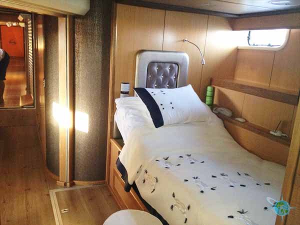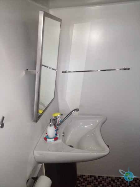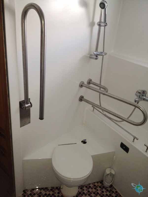 There are three bedrooms (one VIP and two guest rooms) that are suitable for handicapped people and located on the first (ground) floor of the yacht. All three rooms are equipped with touch pad controls for the lights, music, HVAC system and even the doors. Furthermore, all the beds are hospital-style beds with controls for the feet and head and are at a height is 50cm from the floor to the top of the mattress. No matter what room you are staying in, disabled guests will find the comfort of grab-bars, a roll-up sink and roll-in shower in the bathroom. One can sit on the toilet or a portable padded stool to shower. The height of the mirror can be adjusted according to guest. In the VIP room there is one king-size bed (2m in length) and is composed of two independent bases to provide a comfortable arrangement for both our handicapped guest and his/her companion who may or may not be handicapped. In both guest rooms, there is only one twin bed but an air-bed can be provided for non-handicapped guests. One Roho airbed can also be provided (90cm X 200cm).